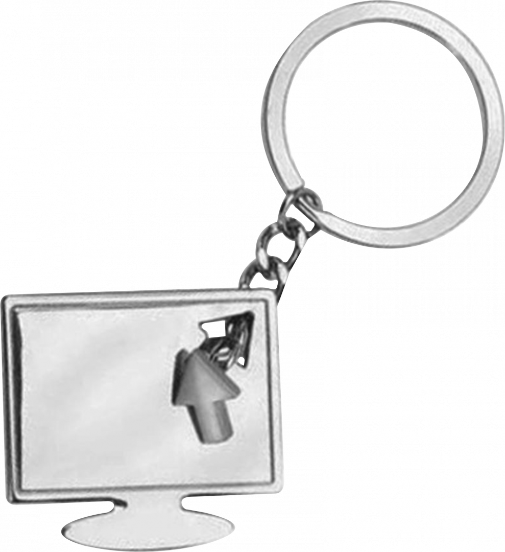 Monitor alakú kulcstartó. Fém, fényes. Az ár tartalmazza az egy oldalon történő gravírozást.(3 szó)